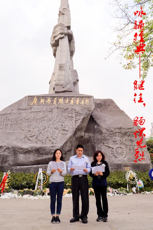 办公室党支部前往烈士陵园,举行"缅怀先烈、不忘初心、砥砺前行"为主题的咏诵经典纪念活动。